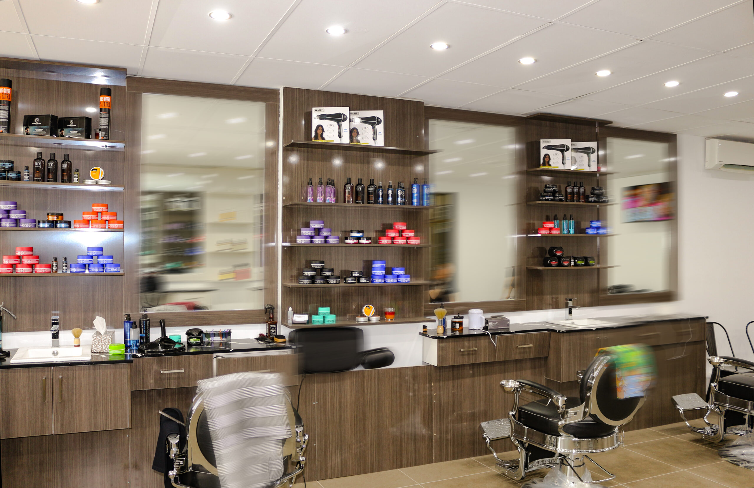 The space has been meticulously designed with a modern architectural fit-out, catering to both barbing and hairdressing needs. Experience a fusion of style and functionality in an enviornment crafted to enhance your grooming experience. Stepping into a contemporary setting where artisty meets comfort, tailored to elevate hair care journey.