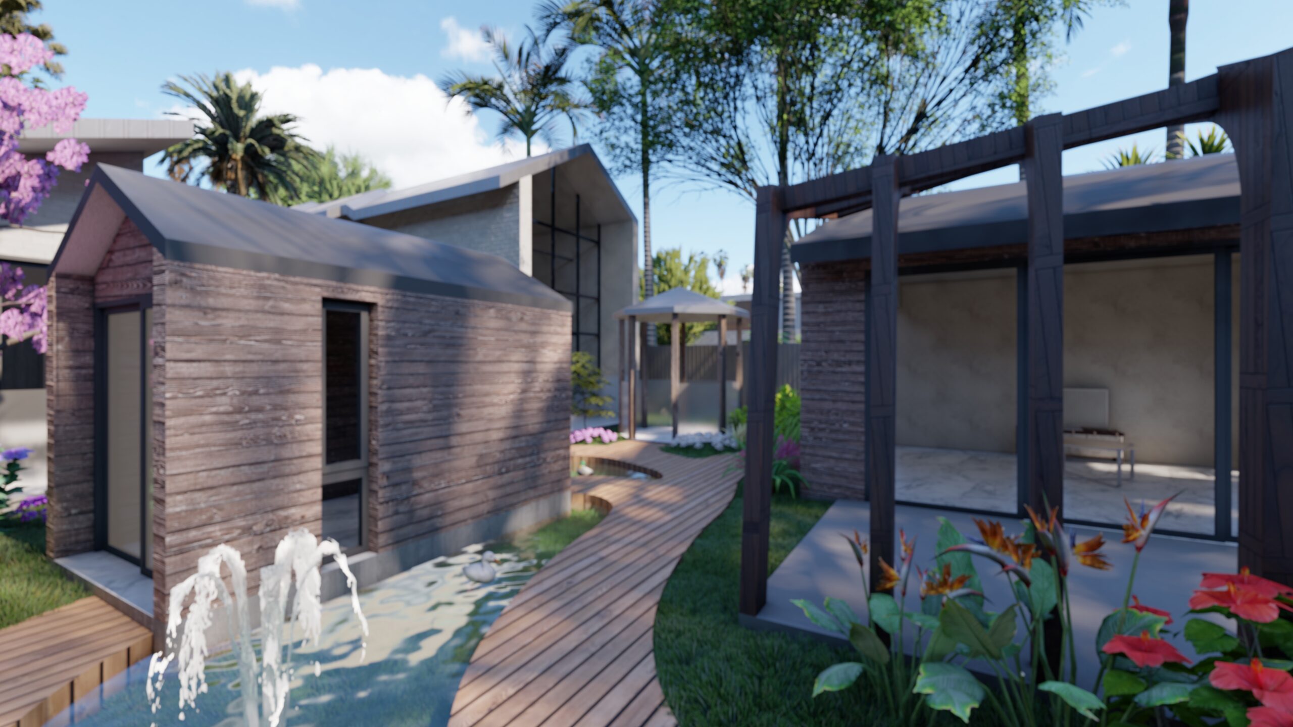 Embracing a lifestyle deeply intertwined with the natural world, this innovative approach divides the building into distinct yet interconnected zones; private, public, and semi-public spaces. Each areas beckons inhabitants to immerse themselves in a holistic experience, seamlessly blending with the surrounding natural landscape. Envision pathways adorned by lush greenery, tranquil water bodies weaving through individual spaces and a harmonious integration of architecture and nature